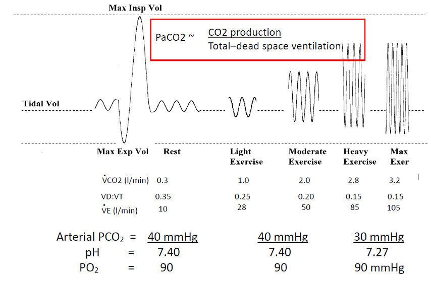 The respiratory system is designed to maintain constant oxygen and carbon dioxide concentrations in the blood under all circumstances. During exercise, ventilation increases both to supply more oxygen and to expel more CO₂.